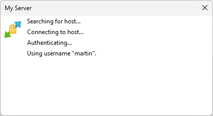 During authentication WinSCP will present you with authentication window to show you progress of authentication and to prompt you to enter your credentials or other information.