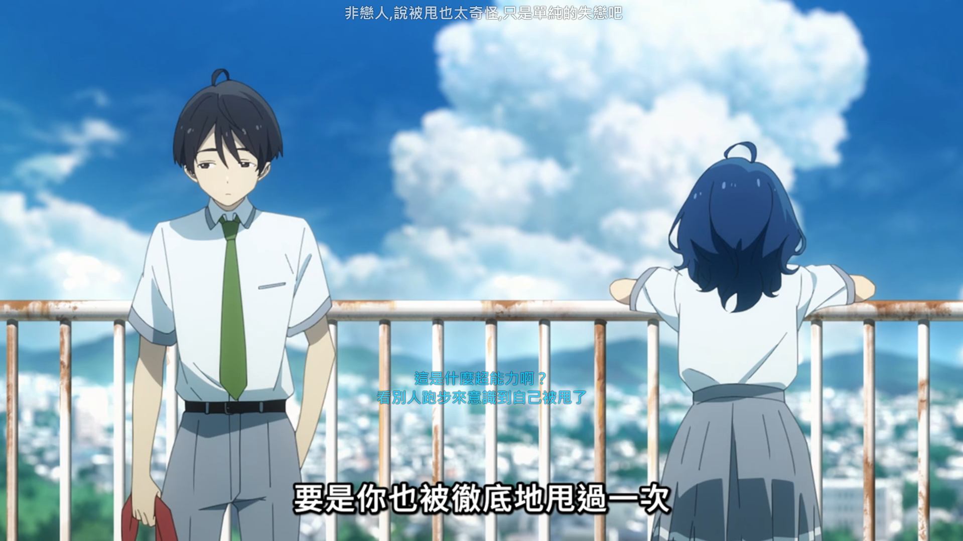 摄影亮点之一 其次是色彩方面 和少主的色彩设计一样不错 但少主的色彩设计较为突出 个人比较喜欢败犬的色彩设计处理 最后的是 场景构图真不错 虽然和自己阅读小说的那种感觉场景不同 但做的意外的有感觉啊 这下有追番键必定点追番