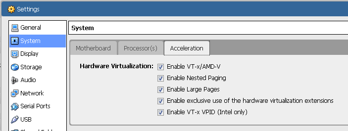 | Enable exclusive use of the hardware virtualization extensions | VBoxManage modifyvm --hwvirtexexcl |