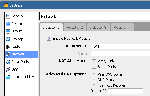 | DNS Proxy | VBoxManage modifyvm --natdnsproxy |