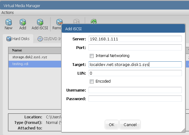 | Encoded | VBoxManage storageattach --encodedlun |