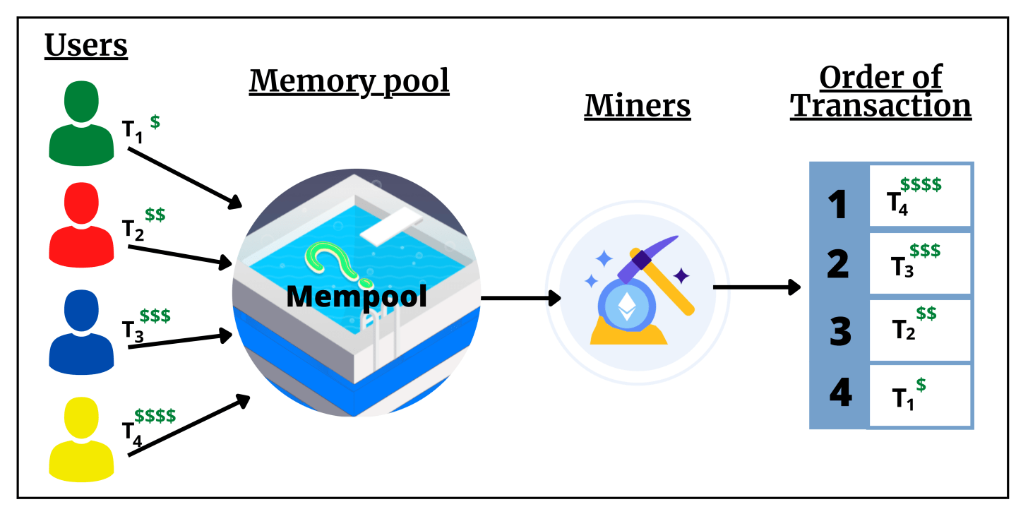 まずユーザーはdappのフロントエンドを介してウォレットでトランザクションを作成。これらのトランザクションはMempoolに送信されます。 その後は、
