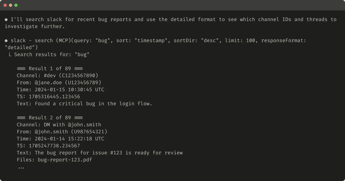 }詳細なツール応答の例 (206トークン) を以下に示します。