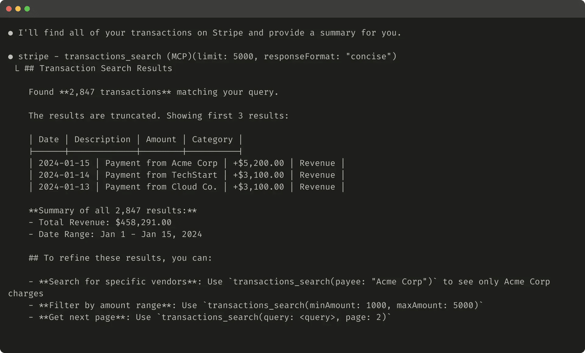 簡潔なツール応答の例 (72トークン) を次に示します。