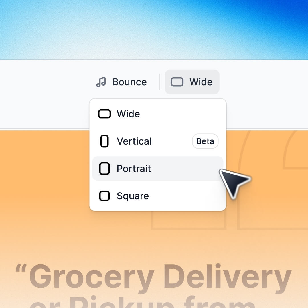 Generate vertical reels for YouTube Shorts, Instagram, and LinkedIn, or horizontal videos for your website and email. Right-sized, every time.