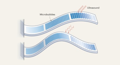 Soft materials filled with microbubbles flex when exposed to ultrasound â forming the basis of wireless devices that can be made to pass through organs such as the intestine.