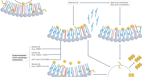 This Perspective centres on alterations in the fatty acid-ome as the critical feature of lipid aberration in α-synucleinopathies, specifically Parkinson disease. Here, the authors explain the biological and genetic basis for their hypothesis, with an emphasis on the transient binding of α-synuclein to fatty acids of various lipids.