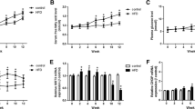 HSPA5 overproduction partially protects MIN6 cells from lipid-induced apoptosis. a Western blot analysis of HSPA5 in GFP- and HSPA5-overproducing MIN6 cells at the end of the 48 h treatment period (72 h after transfection). MIN6 cells were transfected with an expression vector encoding for Hspa5 (pBIP-DEST40) or GFP (pmaxGFP) by nucleofection. Myosin served as a loading control. b Effect of HSPA5 overproduction on lipid-induced apoptosis in MIN6 cells. 24 h after transfection, HSPA5- and GFP-overproducing MIN6 cells were treated with either 0.92% BSA alone (open bars) or 0.92% BSA coupled to 0.4 mmol/l palmitate (dark bars) for 48 h and apoptosis measured using a cell death detection ELISA kit. Results are means±SEM determined from three experiments performed in triplicate. *p < 0.05 for difference between palmitate-treated GFP- vs palmitate-treated HSPA5-overproducing MIN6 cells. c Reduced activation of genes involved in ER stress in palmitate-treated HSPA5-overproducing MIN6 cells compared with palmitate-treated control (GFP) cells. Western blot analysis of phospho(P)-EIF2AK3, XBP1 (active 54 kDa form), P-EIF2A, total EIF2A, DDIT3, cleaved caspase-3 and β-actin in GFP- and HSPA5-overproducing MIN6 cells treated with either 0.92% BSA alone or 0.92% BSA coupled to 0.4 mmol/l palmitate for 48 h. Representative western blot images are shown from two to three experiments