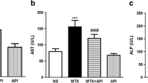 Ali N, Rashid S, Nafees S, Hasan SK, Sultana S (2014) Beneficial effects of chrysin against methotrexate-induced hepatotoxicity via attenuation of oxidative stress and apoptosis. Mol Cell Biochem 385:215–223. https://doi.org/10.1007/s11010-013-1830-4