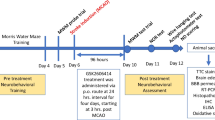 Protein extraction from hippocampi and immunoblots of UPR and synaptic proteins were performed as described [23, 24]. Proteins were detected with the following antibodies: eIF2α-P (S51) (1:1000; 9721, Cell Signaling) and eIF2α (L57A5) (1:1000; 2103, Cell Signaling), ATF4 (CREB-2, 1:1000; sc-200, Santa Cruz), GADD34 (1:1000, 10449-1-AP, Proteintech), PERK-P (1:200, 32577, Santa Cruz), PERK (1:1000, 3192, Cell Signaling), SNAP25 (1:10,000, ab5666, Abcam), PSD-95 (1:1000, EP2652Y, Millipore) total tau (Tau 5, 1:5000, AHB0041, Invitrogen), GSK3β (1:2000, 9832, Cell Signaling), pSer9-GSK3β (1:1000, 9322, Cell Signaling) and pTyr279/216-GSK3α/β (1:1000, 05-413, Millipore). Horseradish peroxidase (HRP)-conjugated secondary antibodies (1:10,000; DAKO) were applied, and protein was visualised using enhanced chemiluminescence (GE Healthcare) and quantitated using ImageJ. Antibodies against GAPDH (1:5000; sc-32233, Santa Cruz) and Beta-III-tubulin (1:5000, MAB1637, Millipore) were used to determine loading.