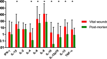 Ohshima T, Sato Y (1998) Time-dependent expression of interleukin-10 (IL-10) mRNA during the early phase of skin wound healing as a possible indicator of wound vitality. Int J Leg Med 111:251–255