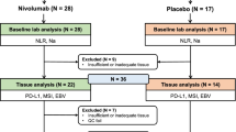 Although nivolumab plus chemotherapy was overall associated with favorable survival outcomes in patients with d-MMR tumors, a higher NLR was associated with worse survival in patients treated with nivolumab plus chemotherapy. NLR has been shown to have prognostic value in the treatment of advanced gastric cancer with either chemotherapy [21,22,23] or ICI [24, 25]. As NLR values are readily available in clinical practice, this points to the practical aspects of predicting outcomes of d-MMR/MSI-high patients with nivolumab plus chemotherapy.