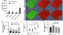 Biofilm formation and quantification were performed as previously reported31,44,45,46. The bacterial strains were grown overnight at 37â°C in BHI medium. The cultures were diluted 1000-fold in BHIG, BHIN, BHINC, or RPMIG, and the suspensions were incubated at 37â°C for the indicated periods under static conditions. Biofilms in 96-well plates (Corning, Corning, NY) were washed twice with PBS (150âµL per well) and stained with 0.05% CV (150âµL per well) for 3âmin at 25â°C. The wells were washed once with 150âµL PBS, and the absorbance at 595ânm was measured using an Infinite F200 Pro Microplate Reader (Tecan, Männedorf, Switzerland) to quantify the biofilm. To investigate the inhibition of biofilm formation by degradative enzymes, enzymes were added directly to the biofilm cultures in 96-well plates at the onset of biofilm formation. To examine biofilm dispersal, enzymes were added to 24-h biofilms formed at 37â°C in 96-well plates and incubated for 30âmin at 37â°C before washing. The final enzyme concentrations were 16âµg/mL for dispersin B, 100âU/mL for DNase I, 100âµg/mL for proteinase K, and 80âµg/mL for RNase A in biofilm cultures. If required, lower concentrations of RNase A (5 and 10âµg/mL) and dispersin B (0.08 and 0.16âµg/mL) and their combinations were used to investigate their synergistic effect. All the enzymes were used without buffer. As a control, the biofilms were left untreated (neither enzyme nor buffer was added).