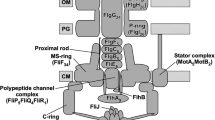 Ueno, T., Oosawa, K. & Aizawa, S. M ring, S ring and proximal rod of the flagellar basal body of Salmonella typhimurium are composed of subunits of a single protein, FliF. Journal of molecular biology 227, 672â677 (1992).