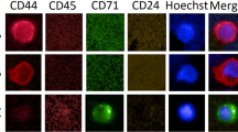 The concept of cancer stem cells relies on the presence of a subpopulation of cells within tumors that drives tumorigenesis, as well as giving rise to a large population of differentiated progeny that constitute the bulk of the tumor but lack tumorigenic potential [26]. Multiple studies indicate that CD44+/CD24- breast cancer cells have tumor-initiating properties [1–3].
