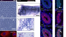 Transplantation into epithelial-free fourth mammary fat pads of 21-day-old FVB mice was carried out as described previously [9, 11, 12]. Freshly harvested SP and non-SP cells were transplanted at varying numbers as already described. Transplants were given 8 weeks to grow before either being harvested or allowing host animals to be mated. Transplanted fat pads from mated animals were harvested on days 17–18 of pregnancy. Harvested glands were fixed and carmine-stained as wholemounts. After being photographed, pieces of interest were dissected out of the wholemounts, embedded in paraffin blocks and processed by standard histological techniques for H & E sections and immunocytochemistry.