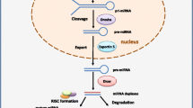 The process of miRNA biogenesis and the components that form essential complexes, such as Drosha, DGCR8, Dicer1, and Ago2, have been extensively studied. Particularly, the oncogenic consequences of miRNA biogenesis deregulation have been well-documented [110,111,112]. Estrogen/ERα can modulate key machinery involved in miRNA biogenesis, which may have key functional consequences in ER+ breast cancer. For instance, Dicer, a cytoplasmic endonuclease required for cleavage of the hairpin loop from the pre-miRNA, can be induced by estradiol as Dicer is reported to associate with an ERα binding site, which promotes Dicer mRNA transcription [32]. Accordingly, Dicer expression is upregulated in ER+ breast cancer [4]. To note, Dicer expression can be modulated by miRNAs, including miR-221/222, miR-29a, and miR-200c [8]. Conversely, Ago1/2 were found to be downregulated in ER+ breast cancers versus ER− breast cancers despite upregulation of other components of the RISC (i.e. Dicer and TRBP) [4, 113]. Drosha expression was also significantly lower in ER+ breast cancer samples. As well, it has been proposed that activated ERα may interfere with the Drosha-DGCR8 microprocessor complex that is responsible for pri-miRNA cleavage [114]. Nevertheless, as a potential functional consequence of estradiol-mediated Dicer induction and the activation of other cell signaling pathways that stimulate miRNA biogenesis, the overall expression level of miRNAs is significantly increased in ER+ breast cancer cell lines and patient samples [4, 8]. Given the differential expression/regulation of miRNA processing machinery in ER+ breast cancer, it is critical to understand the factors that regulate these key components and their specific role in cancer promotion or suppression. Overall, defective miRNA biogenesis and machinery appears to be an important mechanism that ultimately contributes to ER-associated breast carcinogenesis. Thus, further exploration of these regulatory mechanisms is necessary to advance our understanding of how miRNA gene regulation can contribute to breast cancer, and may also reveal novel therapeutic strategies/targets for treating ER+ breast cancer.