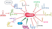 Recently, the indispensable role of TRIM28 for maintaining breast cancer stem cell population has been reported [25, 96]. Cancer stem cells (CSCs) are rare, tumor-initiating cells that exhibit stem cell properties: capacity of self-renewal, pluripotency, highly tumorigenic potential, and resistance to therapy [97]. In our studies, we have demonstrated that downregulation of TRIM28 in highly aggressive, undifferentiated cells of triple-negative breast cancer MDA-MB-231 cell line, which is highly enriched in vitro in CSC-like population characterized by CD44+CD24−/low phenotype, led to significant (p < 0.0001) inhibition of tumor growth in vivo upon subcutaneous cell injection into athymic nude mice [25]. Global analysis of gene expression (RNA Seq and in silico analyses) of MDA-MB-231 wild-type and TRIM28-downregulated xenografts revealed substantial reduction of pluripotency markers expression as well as significant inhibition of signaling pathways previously reported to control the complex mechanism of stem cell maintenance. Moreover, the loss of CSC population in TRIM28-depleted MDA-MB-231 xenografts was further validated with limiting dilution assay (LDA) in vivo. Also, Li J. et al. [96] have observed that TRIM28 together with EZH2, a member of Polycomb Repressor 2 (PRC2) Complex, co-regulates a set of genes associated with stem cell maintenance and poor survival of breast cancer patients. TRIM28 depletion in MCF7 breast cancer cell line in vitro resulted in significant inhibition of CD44+CD24−/low mammosphere formation, which correlated with decreased expression of stem-cell associated genes. These results demonstrate substantial role for TRIM28 in activation of gene expression that promotes mammary stem cell enrichment and maintenance and further underlines TRIM28 engagement in promoting cancer progression [96].