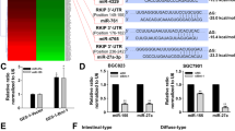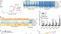 MiR-34a plays a role of tumor suppressor in other types of tumors [34, 35]. As we found Bmi-1 upregulates miR-34a in gastric cancer cells, here, we explored the function of miR-34a in gastric cancer. Firstly, we found the expression of miR-34a was downregulated in all six gastric cancer cell lines compared with that in human gastric mucosal epithelial cell line GES-1 (Additional file 9: Figure S5a), and it was also downregulated in suspension microspheres than in the parent adherent cells (Fig. 5a). Overexpression of miR-34a inhibited cells growth and colony formation (Fig. 5b, c), suggesting it may act as a tumor suppressor. Further, we examined the effect of different expression levels of miR-34a on stem cell-like characteristics and found that upregulation of miR-34a may suppress the formation rate of the microspheres of gastric cancer cells, resistance to chemotherapy and cell migration (Fig. 5d–f), while downregulation of miR-34a can improve the formation of microspheres, chemotherapy resistance, and cell migration (Additional file 9: Figure S5b–d). Further, we analyzed the expression of miR-34a in 74 patients with gastric cancer. Results showed that the expression of miR-34a in cancer tissues is downregulated in 35 cases (47.3 %) compared with that in paired adjacent normal tissues (Additional file 6: Table S3), and miR-34a expression negatively correlated with vascular invasion as the expression of miR-34a was lower in patients with positive vascular invasion (Table 2), which suggested that downregulation of miR-34a correlated with a more aggressive phenotype. These results suggest that miR-34a might act as a tumor suppressor and negatively regulates stem cell-like characteristics in gastric cancer.