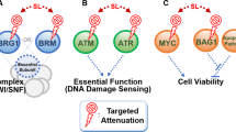 Currently, most of targeting therapies in cancer are directly targeted at activated oncogenes or “gain of function” genetic aberrations, including gene mutation, amplification and fusion. Even though some of these strategies are very successful, such as EGFR and ALK inhibitors in lung cancer therapy, acquired resistance remains a major barrier to treatment [57]. Unfortunately, not all identified mutations or aberrant expressions can be directly targeted. Such as ‘loss-of-function’ or loss of expression by inactivating gene mutations are hard to restore activities pharmacologically, and less success has yet been achieved [58]. Notably, synthetic lethality strategy allows the therapeutic exploitation of non-druggable mutated tumor suppressor genes and directly difficult-to-target (hard-druggable) oncogenes, via targeting their synthetic lethality partners [59]. Synthetic lethality approaches can achieve the effect of “target damage” by taking advantage of inherent differences between cancer cells and normal cells, which is not feasible with traditional chemotherapy [60]. Given that differences of genomic features between cancer cells and healthy cells, Hartwell was the first to use traditional genetic approaches, genomic information and model organisms for identifying and validating new targets for drugs that would selectively kill tumor cells with a particular molecular [26]. Subsequently, siRNA and CRISPR screenings have been developed to detect synthetic lethal gene pairs in human cells [15]. In recent years, Jerby-Arnon et al. proposed a computational and bioinformatics approach, named data mining synthetic lethality identification pipeline (DAISY), to identify genome-wide synthetic lethal interactions, by analyzing large volumes of cancer genomic data. They applied DAISY to identify all gene pairs that are likely to be synthetic lethal in cancer, resulting in a synthetic lethal network of 2077 genes and 2816 synthetic lethal interactions, and an synthetic dosage lethal (SDL) network of 3158 genes and 3635 SDL interactions [61]. With the help of these advanced screening tools, more novel candidate targets are expected to be discovered. The best-characterized synthetic lethality relationship is between BRCA1 or BRCA2 mutation and PARP inhibition. Several synthetic lethal combinations have been discovered, including Wee1 inhibitor (WEE1i) in p53-defecient cells, ATM inhibitor AZD0156 in conjunction with olaparib or irinotecan (a topoisomerase inhibitor) [62, 63]. It is well established that the genomes of all cancers carry somatic mutations, and advances in DNA sequencing technologies have made it possible to identify thousands of individual somatic mutations in a single cancer genome [64]. The mutation rate is not constant throughout the genome but differs~ 5-fold, and a higher mutation rate is typically seen in late replicating and low transcribing genes [65]. Notably, 20% of tumors from a pan-cancer analysis identified subclonal mutations in the BRCA1/2 pathway [66]. A mutational signature associated with defective HR was first identified in BRCA1/2 germline mutant breast cancers [67], and later in ovarian, pancreatic, and gastric cancers [68,69,70,71]. As shown in Table 1, mutant DDR, cell cycle control and tumor suppressor genes are including RAD51, PALB2, P53, ATM, MGMT and Others [26]. Genes that result in a synergistic effect are commonly interpreted as working in compensatory pathways. The identification of such functional networks is particularly important for understanding cancer-related signaling pathways because the heterogeneity in the genetic background of cancers is often associated with the connected pathways that might provide multiple potential rewiring mechanisms.
