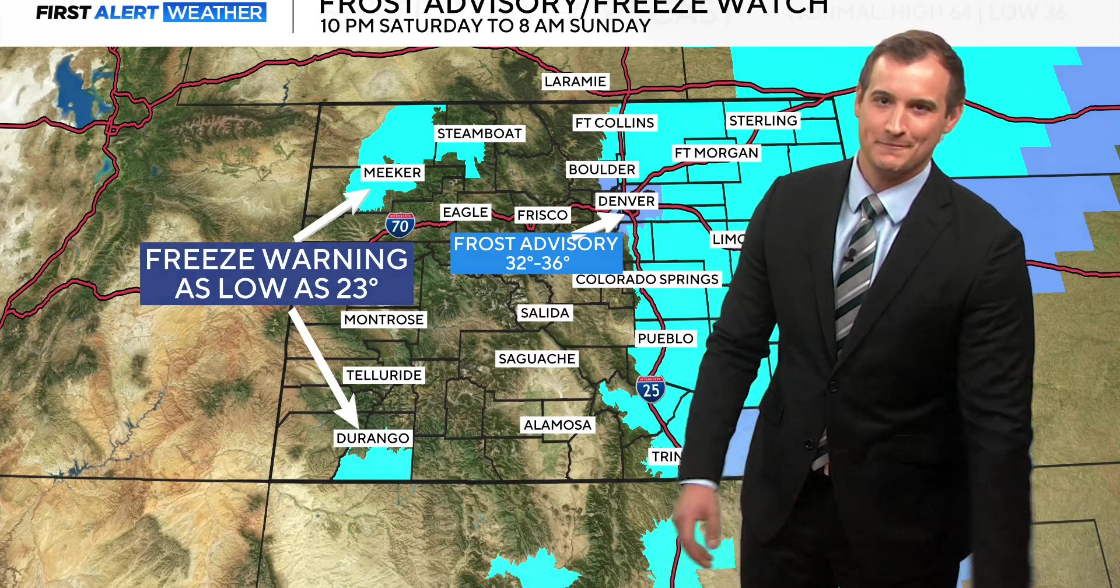 Friday afternoon turns sunny and pleasant with highs in the mid to upper 60s and much lighter winds. Another cool night follows with lows in the upper 30s to low 40s — patchy frost possible again in outlying areas.