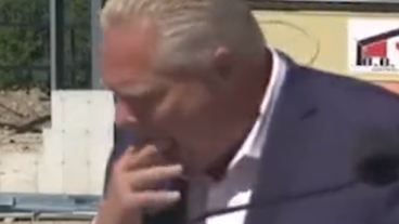 "Little bugger got away in there," Ontario Premier Doug Ford said after the bee's interruption.