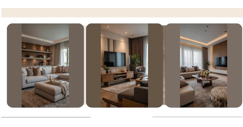 Got a living room that feels more like a closet with a TV? No sweat! This awesome setup shows how you can totally rock a smaller space without feeling cramped. See that super comfy L-shaped sofa? It’s not just for sitting; it’s practically a giant hug for your whole squad on movie night, fitting snugly into the corner like it was born there. Plus, that sleek round coffee table is like the ultimate wingman – cool enough to hold your snacks and drinks, but smart enough not to trip you when you’re busting out those dance moves. It’s all about making sure your room feels like a chill zone, not a furniture maze!