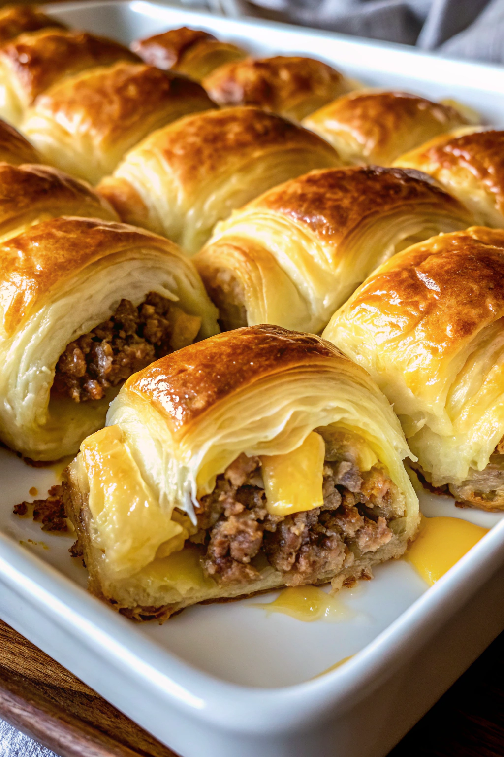 The rich, savory sausage filling balances perfectly with the buttery, slightly sweet crescent dough, making every bite a treat.
