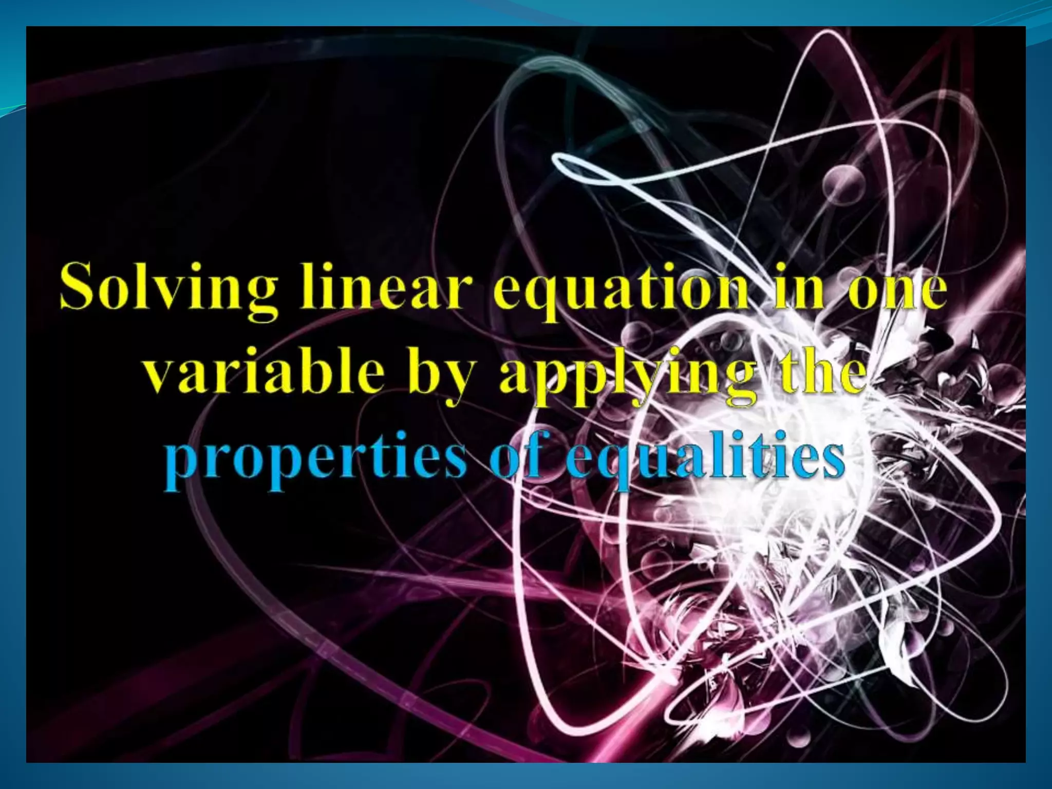 First-degree equations are equations with variables that have exponents of one. These equations can be solved using properties of equality like addition, subtraction, multiplication, and division. For example, an equation like x - 4 = 3 can be solved by adding 4 to both sides, resulting in x = 7.
